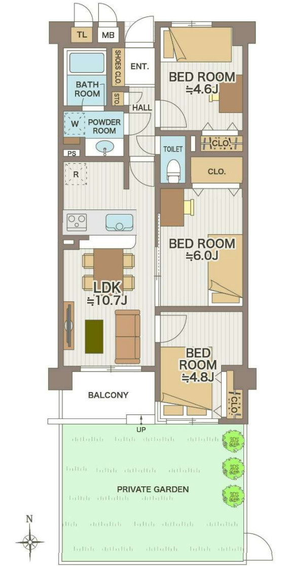 LDK 10.7帖 1室 / 洋室 4.6帖 1室 / 洋室 6.0帖 1室 / 洋室 4.8帖 1室 / |