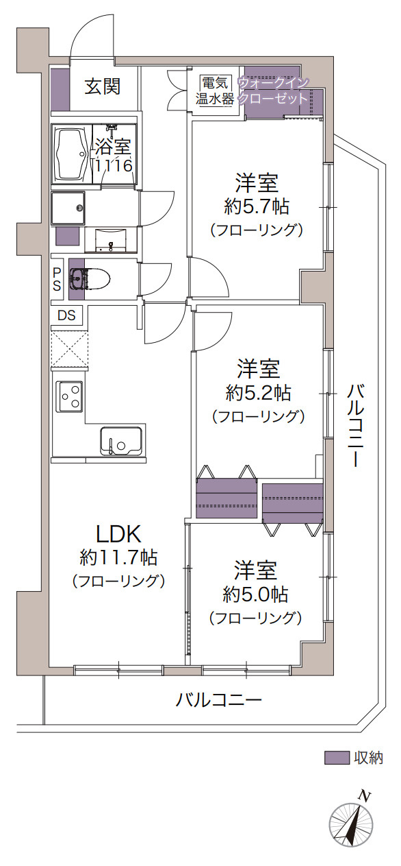 LDK 11.7帖 / 洋室 5.0帖 / 洋室 5.2帖 / 洋室 5.7帖 / |