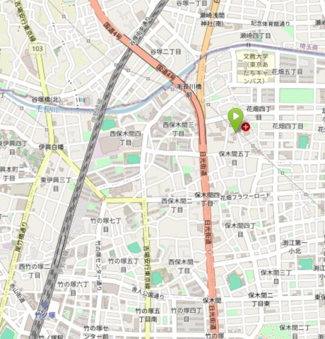 徒歩19分 バス7分 水神橋(足立区)下車 徒歩8分 東武伊勢崎線 「竹ノ塚」駅 徒歩26分 バス16分 団地入口(足立区)下車 徒歩4分 つくばエクスプレス 「六町」駅 徒歩40分 バス2分 文教大学〔東京あだちキャンパス〕下車 徒歩6分 |
