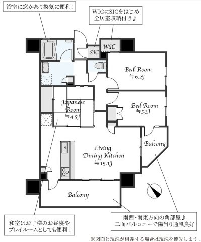 LDK 15.1帖 / 洋室 5.3帖 / 洋室 6.2帖 / 和室 4.5帖 / |