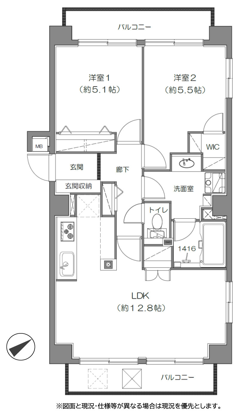 LDK 12.8帖 / 洋室 5.1帖 / 洋室 5.5帖 / |