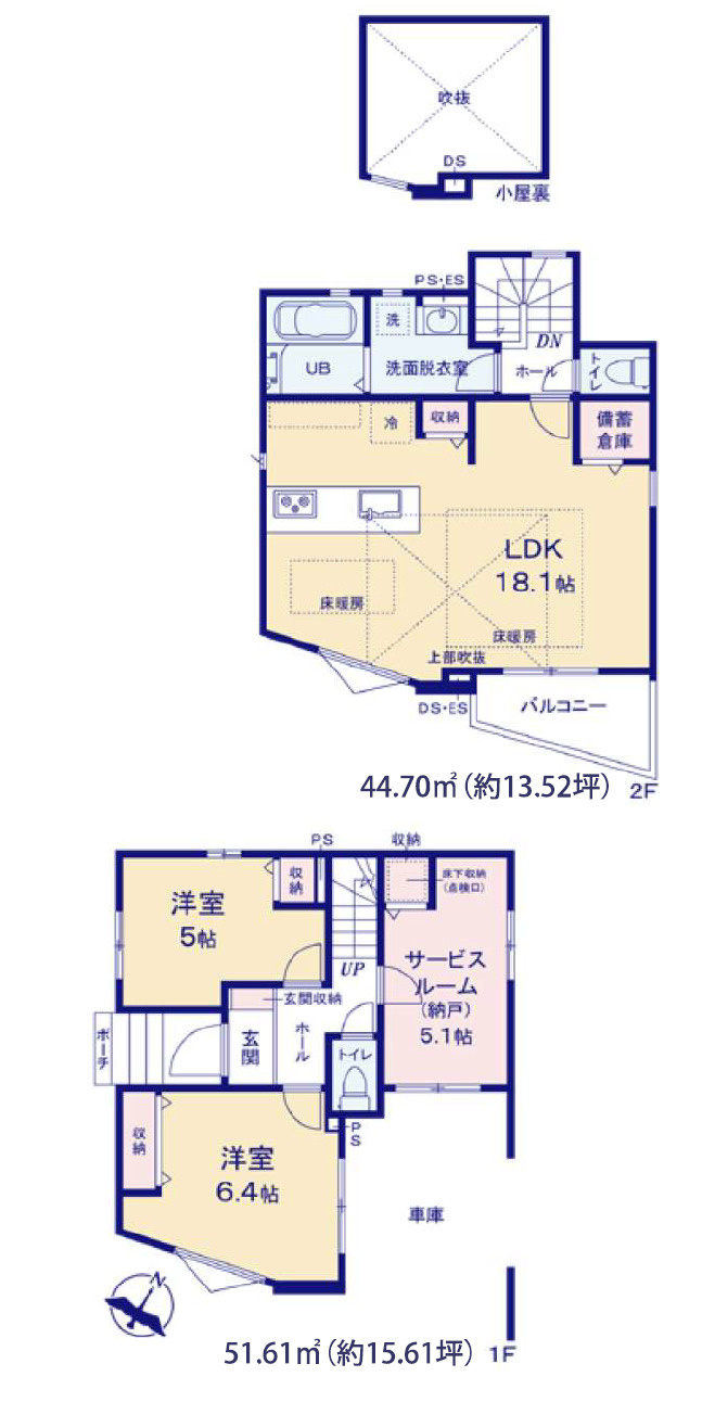 S(納戸) 5.1帖 1室 洋室 5.0帖 1室 洋室 6.4帖 1室 LDK 18.1帖 1室 |