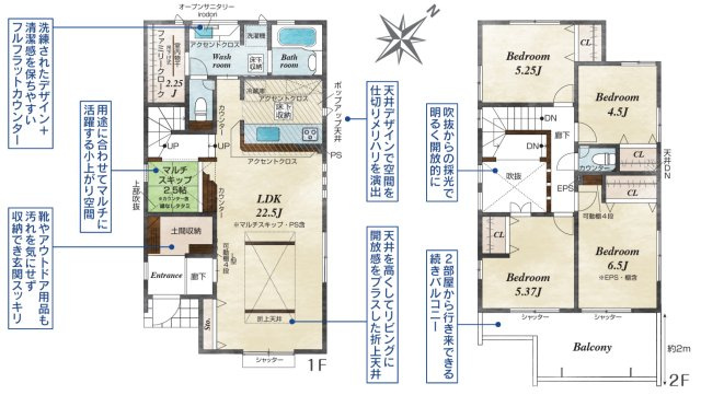 LDK 22.5帖 1室 / 洋室 5.2帖 1室 / 洋室 4.5帖 1室 / 洋室 5.3帖 1室 / 洋室 6.5帖 1室 / |